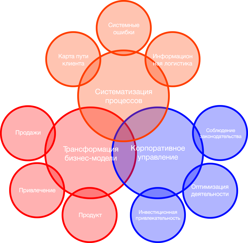 Пропишем пропускную способность ключевых отделов и процессов, дадим дорожную карту как наладить эффективную и прозрачную модель взаимодействия отделов и сотрудников, что увеличит скорость работы каждого человека, даст структурность и упростит взаимодействие людей.